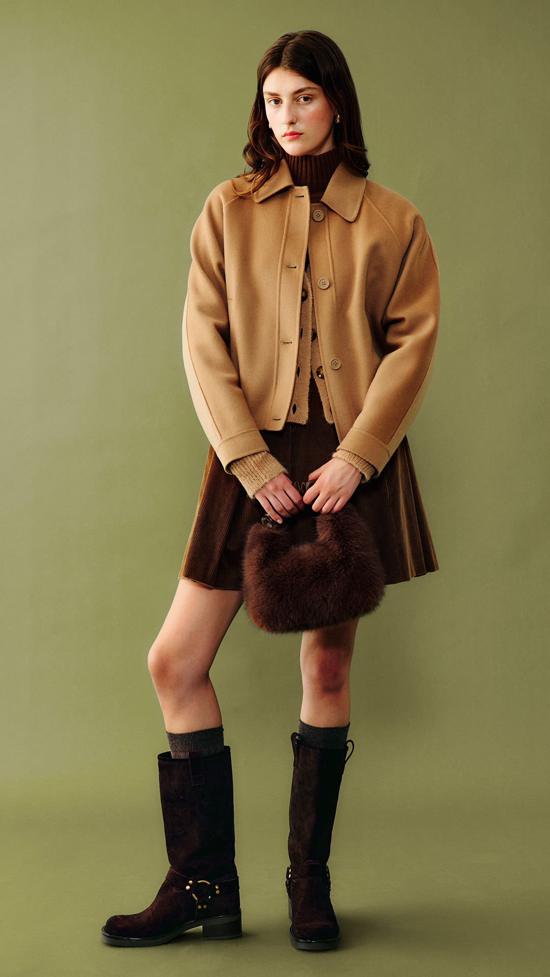 Viste de chocolate este invierno: maxivestidos, blazers de piel y gabanes combinados con guantes largos, slingback de pitón y bolsos acolchados.