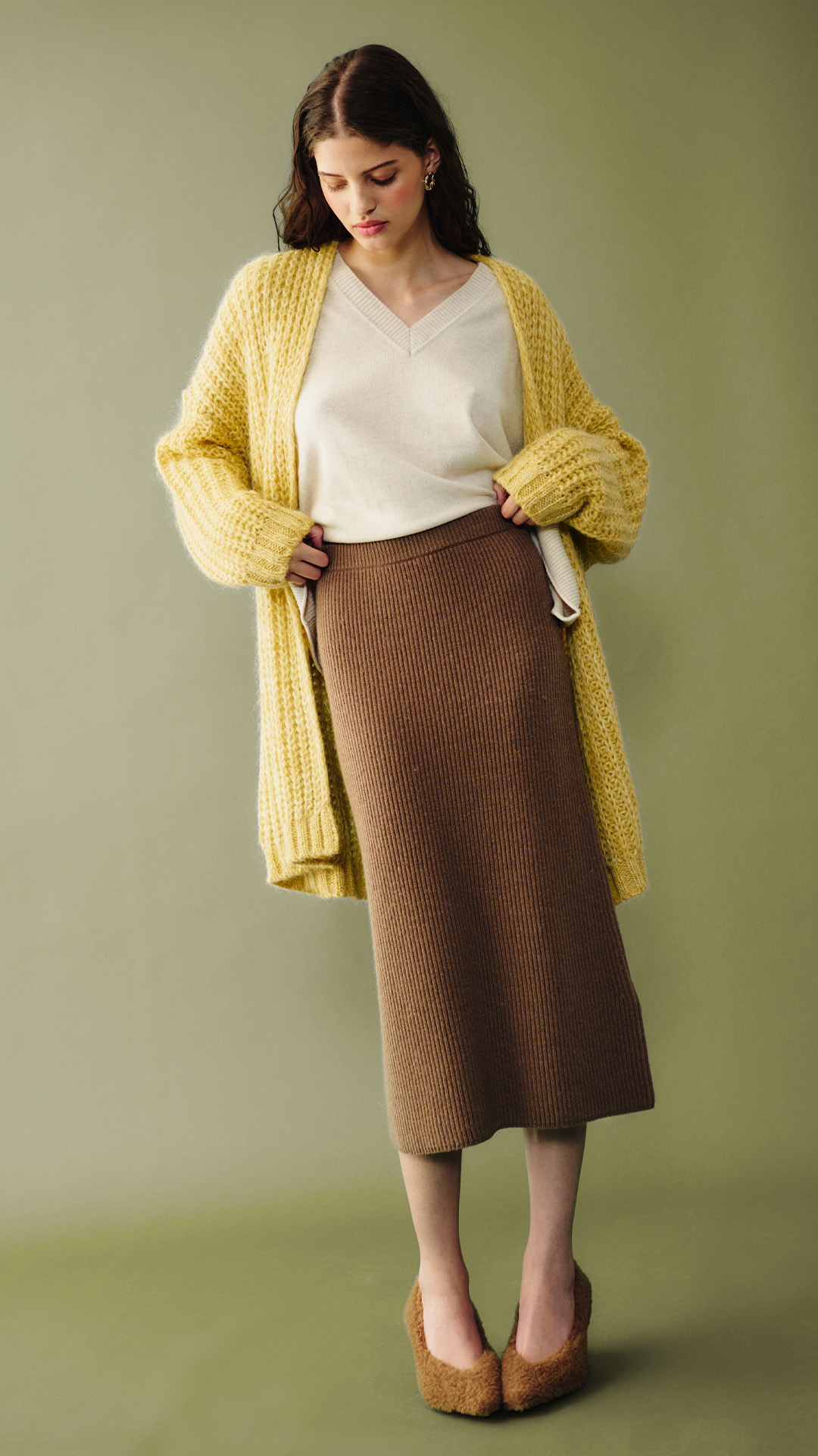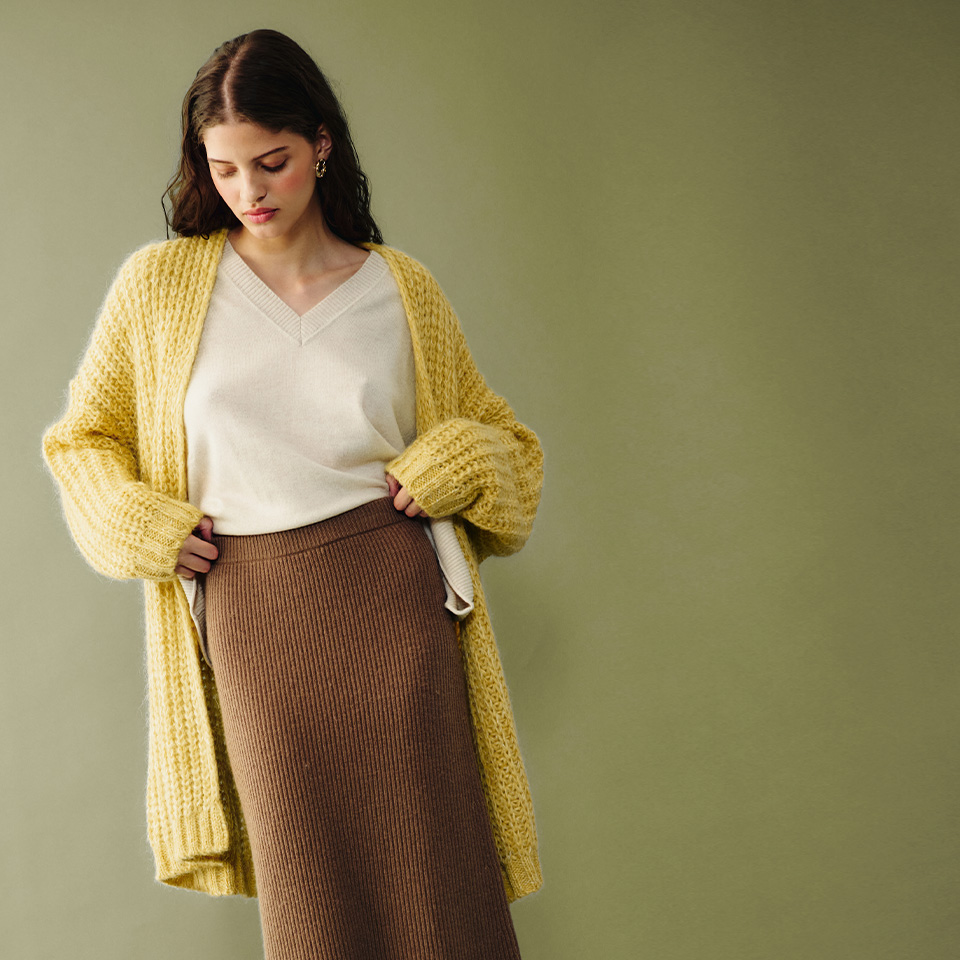 Suaves jerséis, abrigos sartoriales, faldas envolventes y pantalones en una versátil paleta.