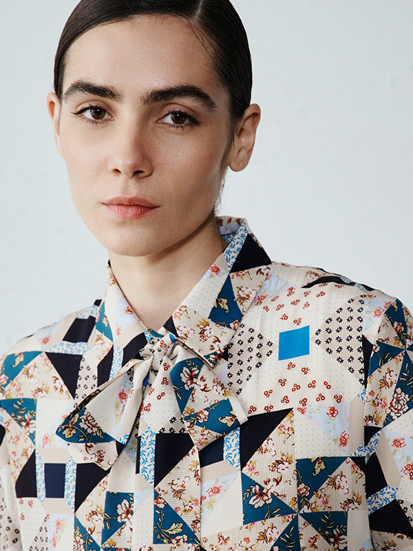 Los cuadros se reinventan con estampados patchwork y gráficos tipo fular. Olvida el rigor: juega con las superposiciones.