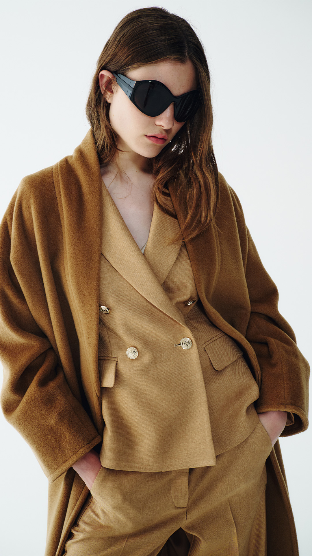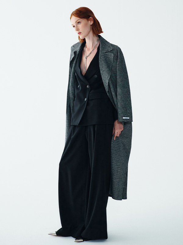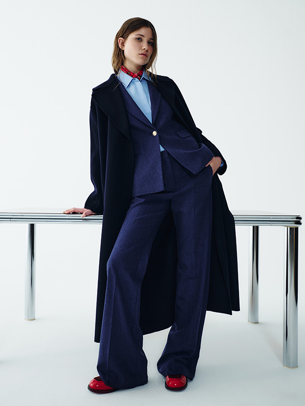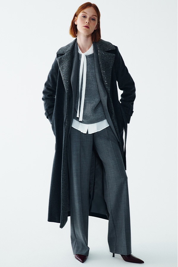 Desde el traje azul intenso con camisa azul claro, fresco y contemporáneo, hasta el traje gris realzado con detalles brillantes: cada look se convierte en un icono cuando se combina con la elegancia de un abrigo oversize. Las líneas fluidas, las proporciones atrevidas y los tejidos de primera calidad definen la nueva estética invernal.