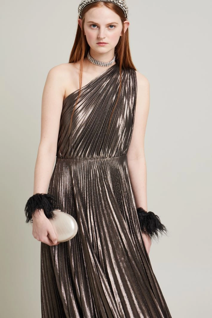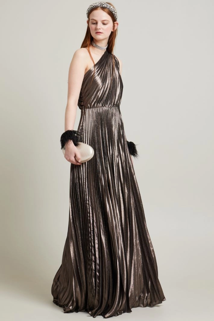 Vestido de un solo hombro de seda lamé