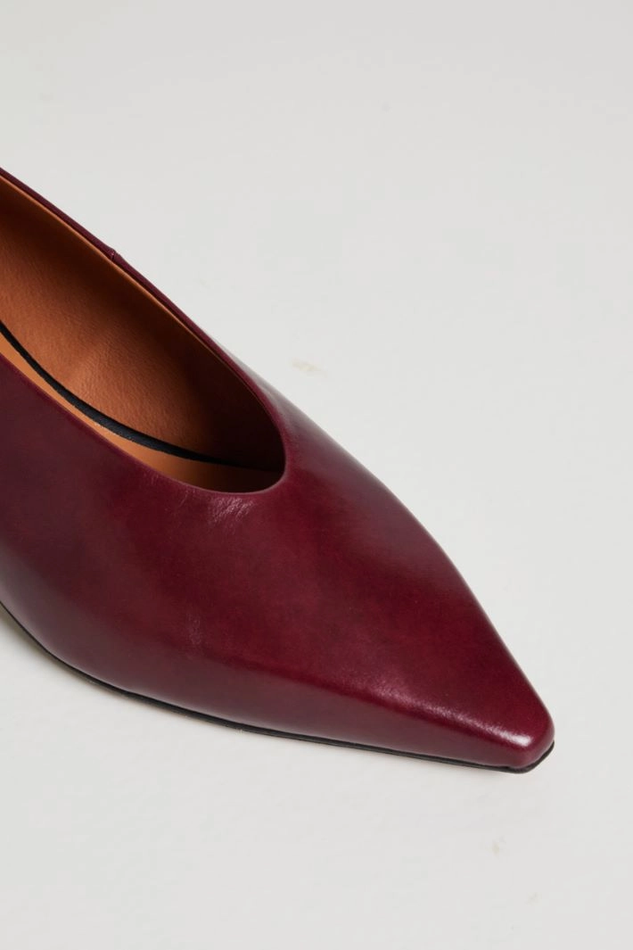 Zapatos de salón realizatos en piel auténtica, con punta fina, escote redondeado y tacón de carrete. Forro de piel, suela de goma.