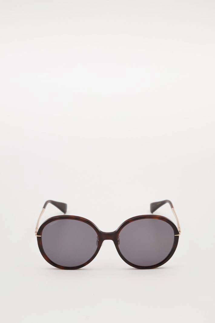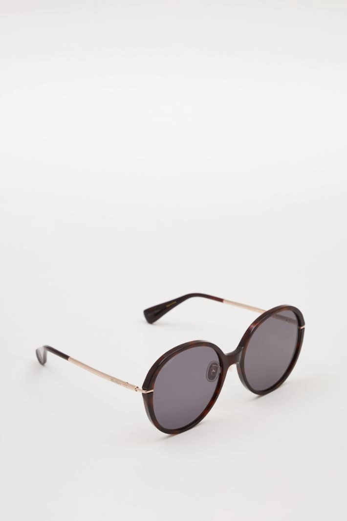 Gafas de sol redondas de resina con patillas metálicas.