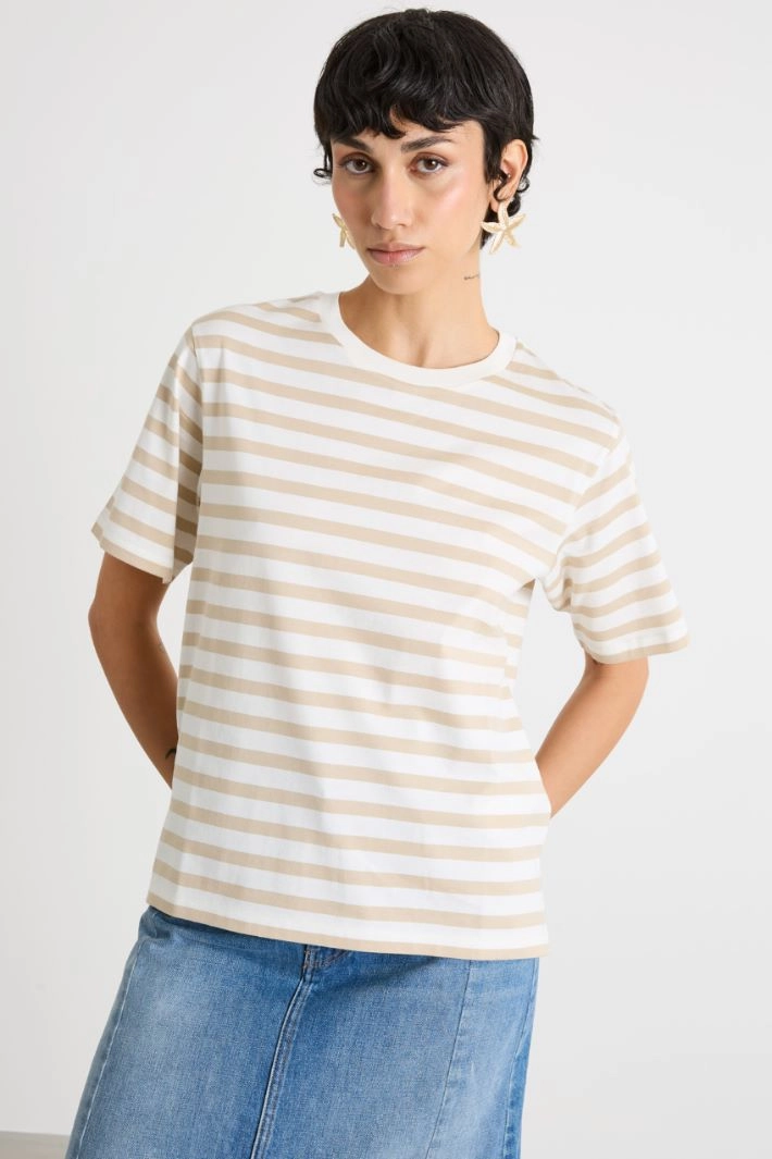 Camiseta de corte recto realizada en punto de puro algodón, con cuello redondo, manga corta y pequeñas aberturas laterales en el bajo.