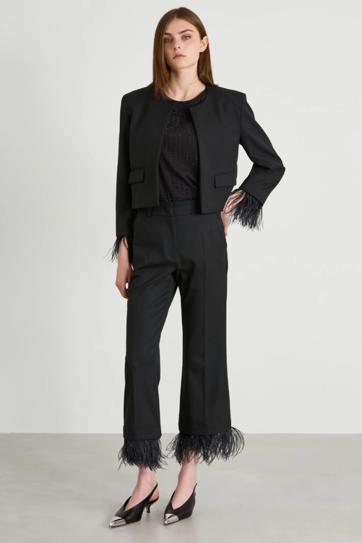 Camiseta regular realizada en punto de puro algodón, con pedrería a juego aplicada en la parte delantera, cuello redondo y manga corta.