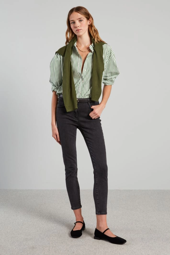 Vaqueros ajustados realizados en denim de algodón elástico, con trabillas en la cintura, cinco bolsillos y cierre con cremallera oculta y botón metálico.
