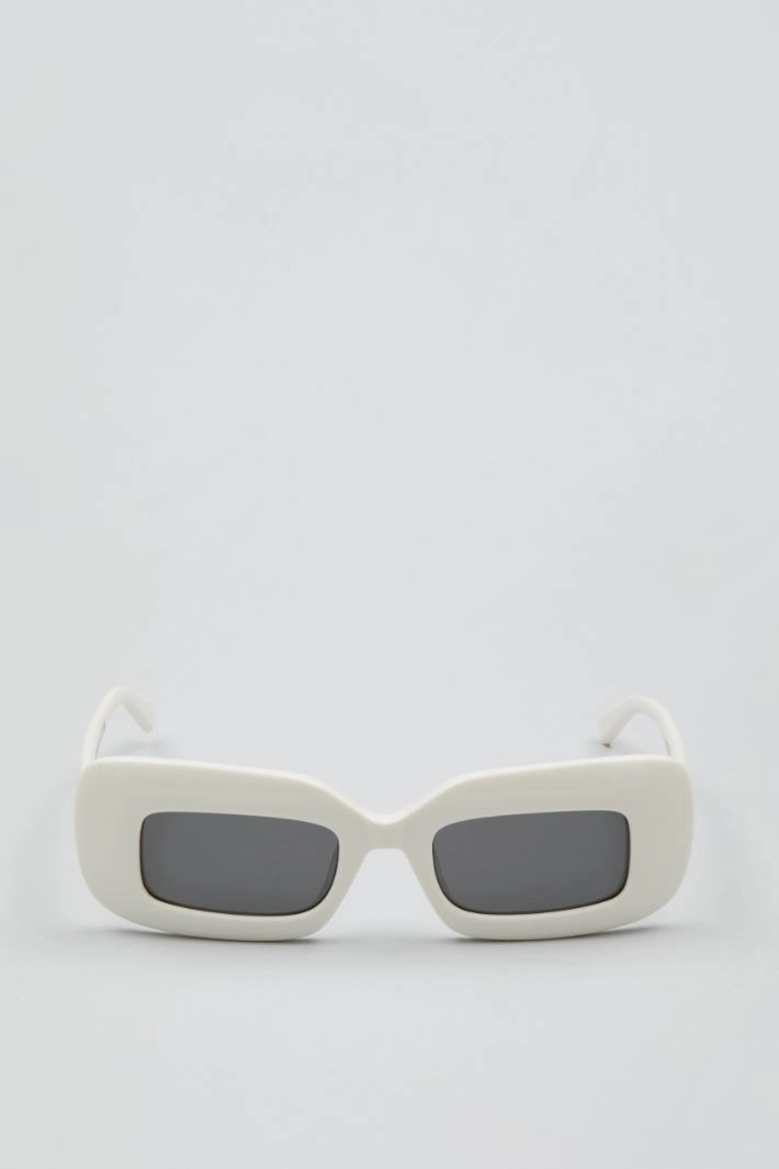 Gafas de sol rectangulares realizadas en resina, con montura bold y cristales oscuros.