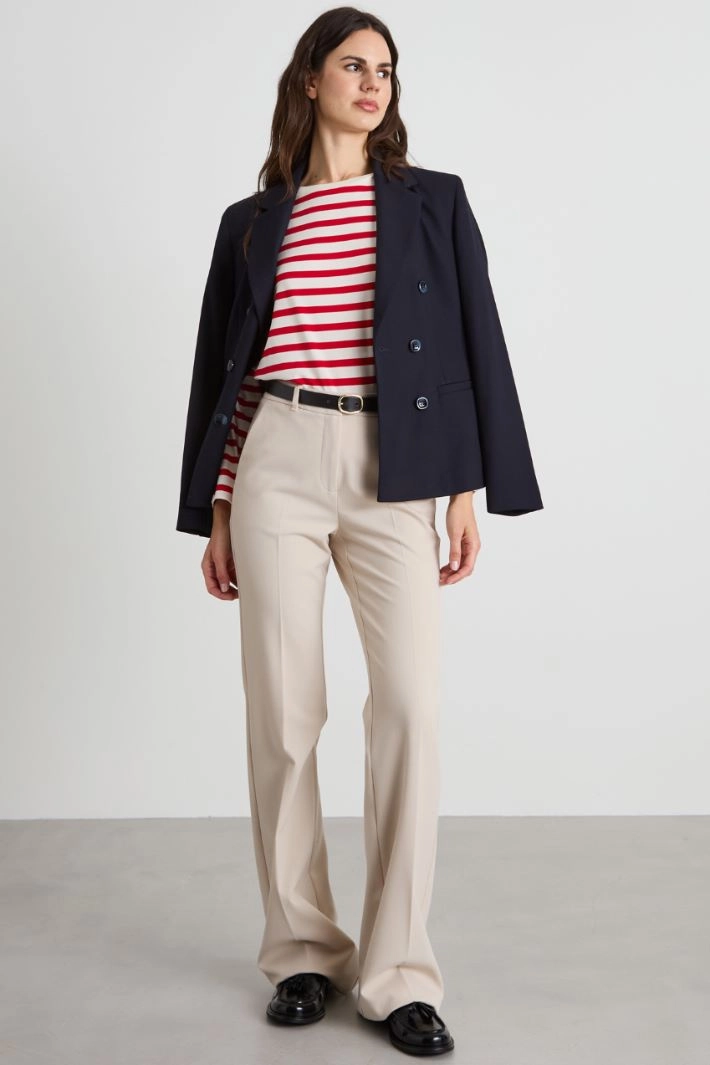 Camiseta de corte regular realizada en punto de puro algodón teñido en hilo, con cuello redondo y mangas largas.