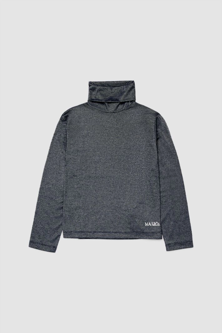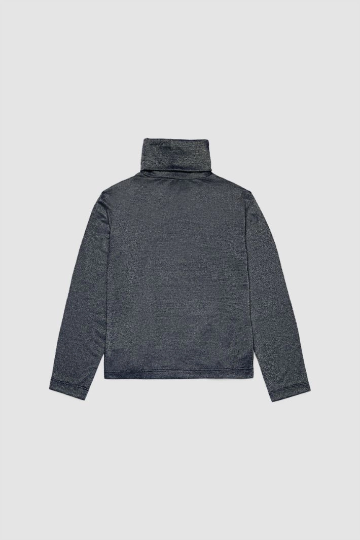 Jersey de cuello alto de corte recto realizado en punto elástico con mezcla de lúrex y manga larga.