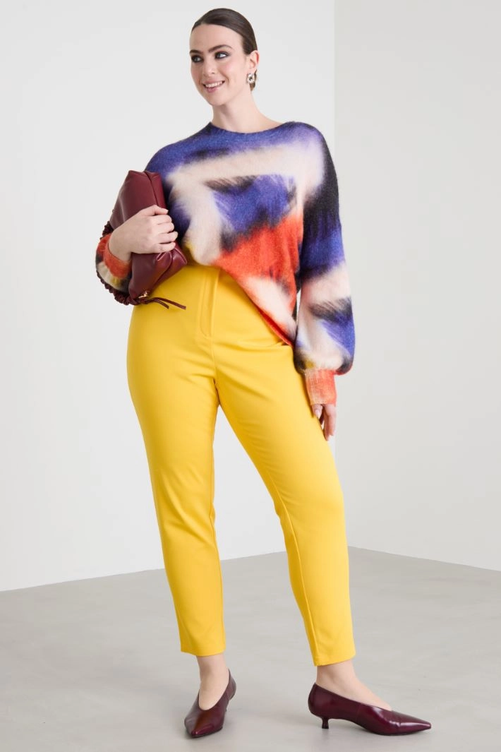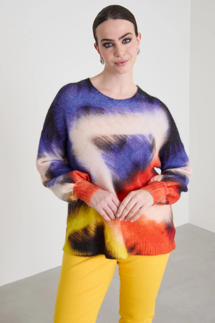 Suéter estampado de corte suave realizado en una mezcla de lana e hilo de mohair elástico, con cuello redondo, mangas largas y ribete de canalé.