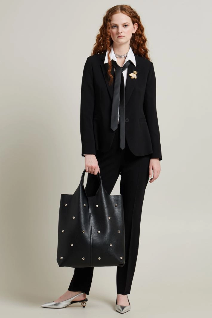 Blazer de corte recto realizado en cady, con cuello solapa, manga larga y abertura en el bajo, bolsillos de ribete y abertura en la espalda. Cierre con botones y botonadura sencilla. Forrado.