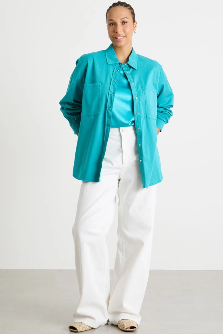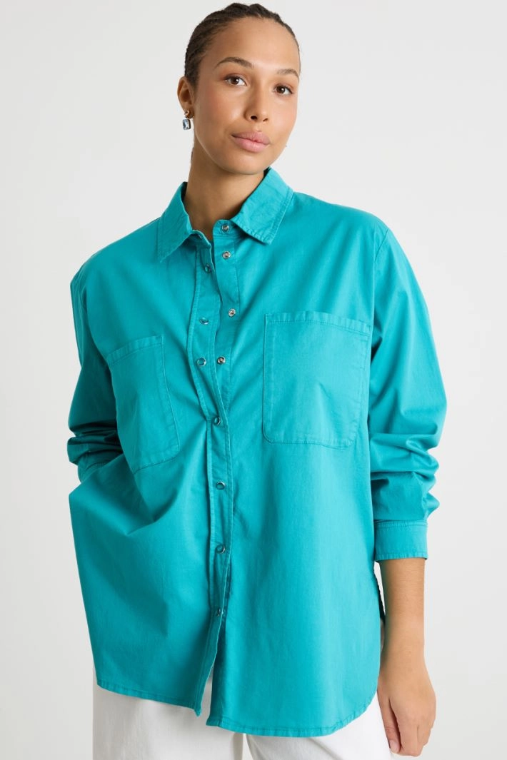 Blusa de gabardina con bolsillos